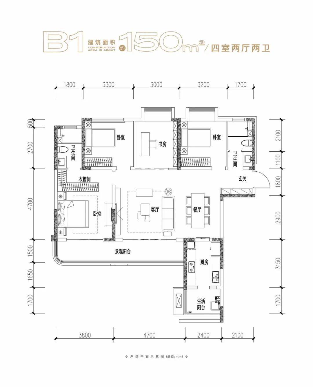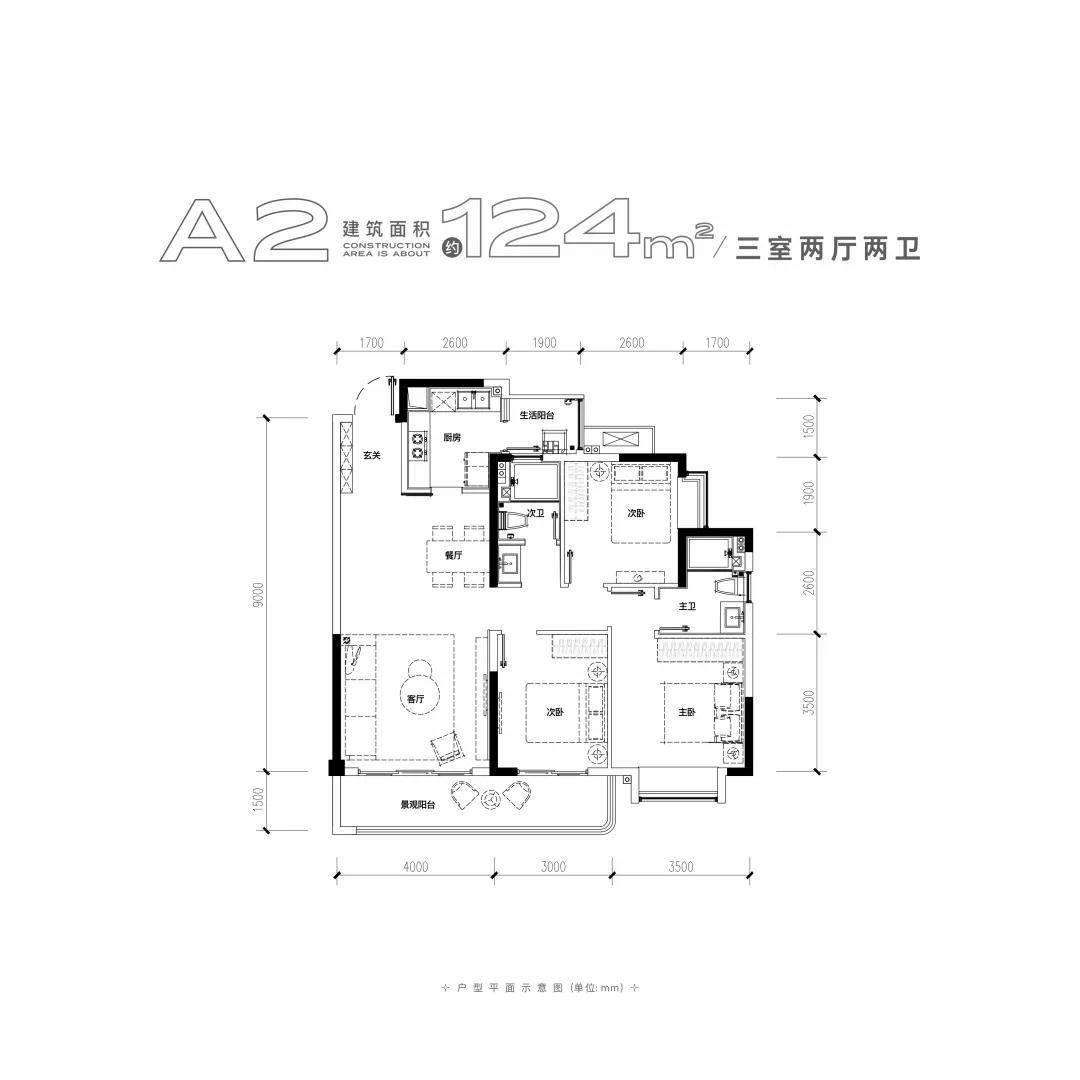 约4.2米宽境尺度客厅,贯连约7.8米南向景观阳台。270°转角环幕视野,三面采光,重构家庭丰盛场景