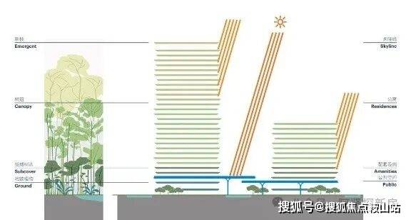 临江3栋高层为公寓,另1栋为演艺中心,靠近黄埔大道的2栋,则是公寓与顶奢酒店。其中T1为13层公寓,T2和T3为32层公寓,T4为4层演艺中心,T5和T6则分别是52层和59层商业商务大楼。