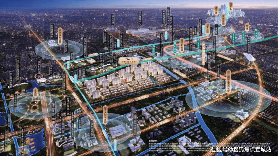 结合上海生态环境保护“十四五“规划,站位国际领先的可持续性项目规划,华发海上都荟结合自身的独特聚合优势,在传统TOD规划之上,不可复制的土地生态资源,向东链接G60科创走廊“以镇命名为区块”洞泾人工智能产业基地;向南直达亚洲大学城之一——松江大学城;北侧紧连上海陆面自然山林资源——佘山国家旅游度假区。板块将区域打造成为“科创+文教+生态”交汇的核心新城模式,划立一个崭新的城市单元示范。