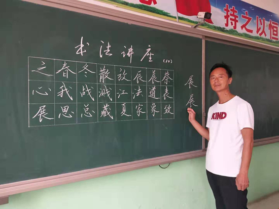 有一次,县里举行书法展。一位老师看到了一幅七年级学生的书法作品,随口说:“这是假的。”那意思是一个七年级的学生,写不了那样好的字。当这位老师看到学生作品下面的指导老师写着“谭中玉”3个字时,改口说:“这是真的。”